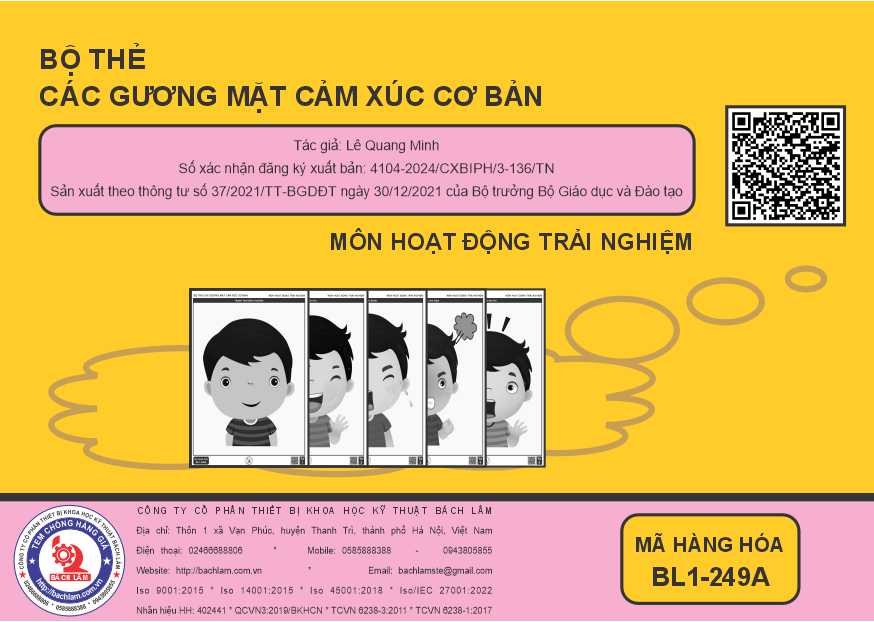 | Bộ 5 thẻ rời, mỗi thẻ minh họa một gương mặt cảm xúc: Trạng thái bình thường, vui, buồn, cáu giận, sợ hãi; |