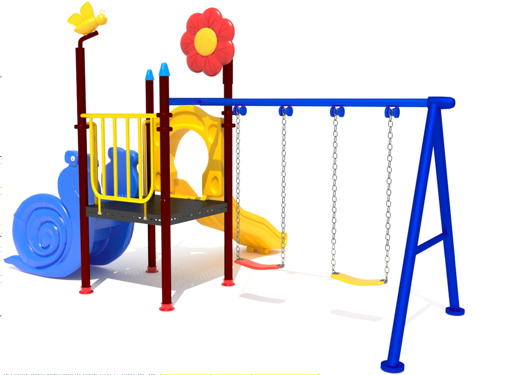 Dài 3,80m, Rộng 2.8m, Cao 3.3m, Sàn nhà chòi KT 1.1mx1.1m dầy 1.5mm , cầu thang làm bằng tôn dày 1,5ly sơn sần tĩnh điện ngoài trời. Cột làm bằng ống thép #113.5 dày 1,8mm, lancan, vách sắt, tay vịn làm bằng ống Ø32, Ø27 dày 1,8mm mạ kẽm sơn tĩnh điện. Các chi tiết nhựa nhập khẩu làm từ nhựa LDPE màu sắc đa dạng.
